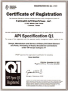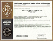 Packard International’s quality program is certified in accordance with the latest edition of API Specification Q1, API Specification 7-1 and ISO 9001. Quality policies, quality assurance guidelines and quality control practices are documented in accordance with program requirements. Product design has been refined over years of effective field use.
